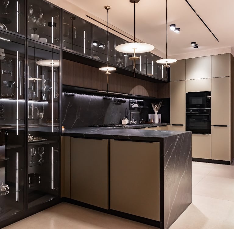 Designed as an inspiring journey rather than a conventional retail space, the showroom showcases a meticulously curated selection of Italian and German brands. These collections, emblematic of technical excellence and emotional sophistication, reflect a design philosophy where innovation and aesthetics advance together.